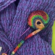 Repurposed baby blue blanket on reverse may cause irritation for some and could be covered with a layer of clear plastic. There is minimal contact with the skin but perhaps a piece that should be worn over a garment if there are any issues with having wool next to the skin.