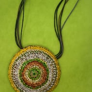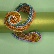 Mostly green with copper, lilac and baby blue wire.
