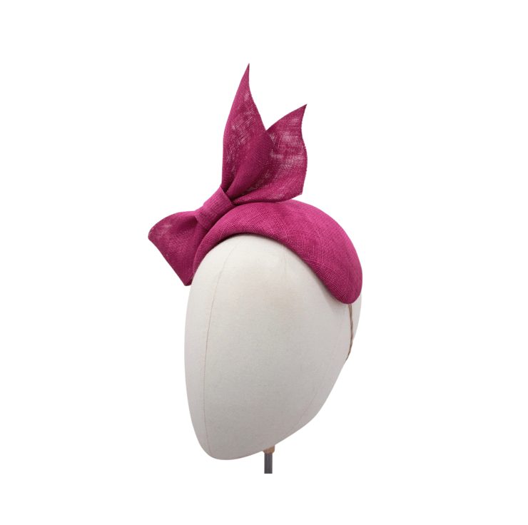 This elegant cocktail hat is a perfect accessory for summer weddings, garden parties, and prestigious events like Royal Ascot. Crafted from sinamay in a vibrant cerise pink shade, it features a sophisticated bow design that adds a touch of charm to any outfit.