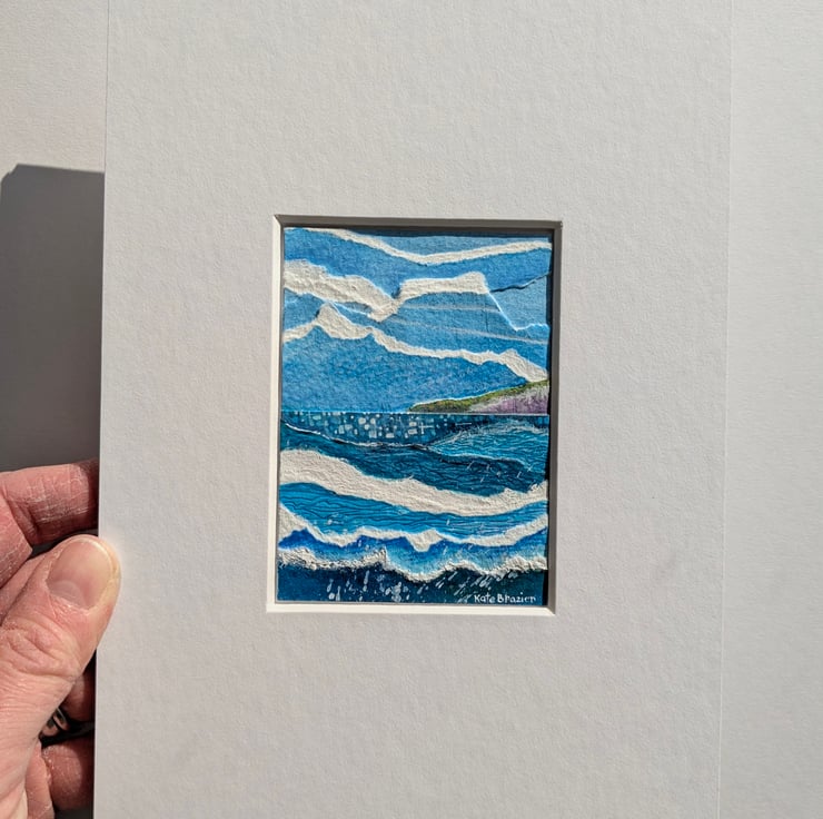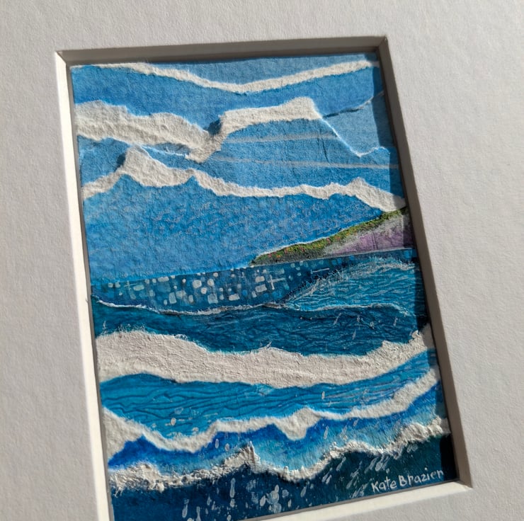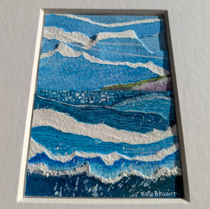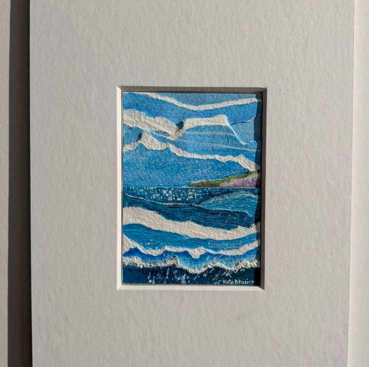 'Miniature Life on the Ocean Wave' is a miniature collage, floated into an A5, double depth mount.