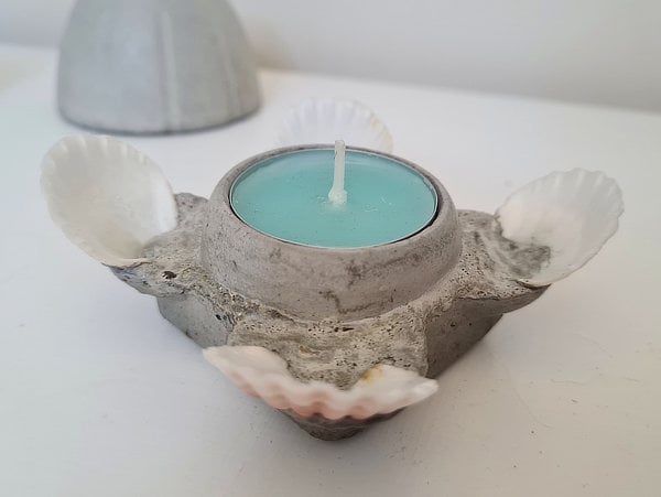 Being based on the south coast with a love for the sea and all that is in it (except plastic) we wondered how we could design and incorporate real natural sea shells into a concrete tea-light.