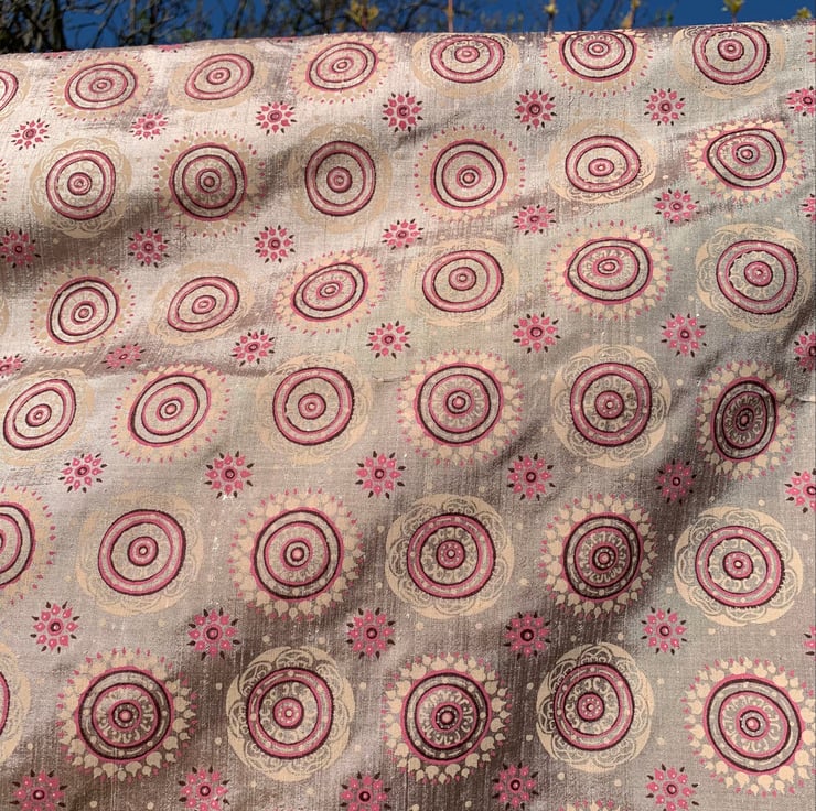 4 m of GORGEOUS Thai silk pink and Pale Gold Dressmaking Fabric for sale
