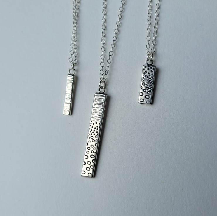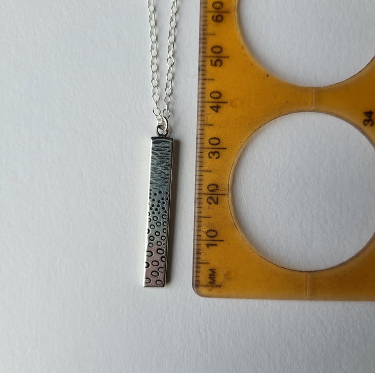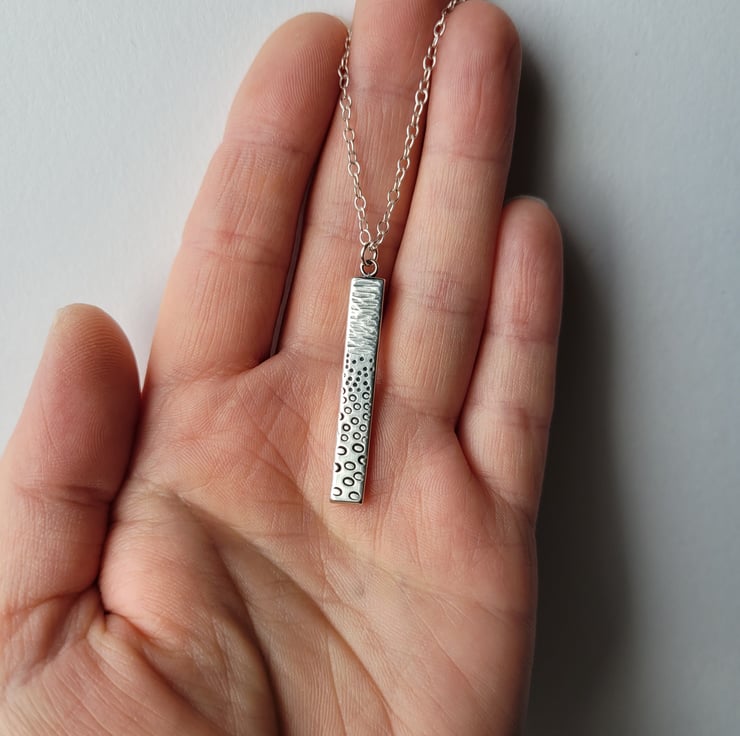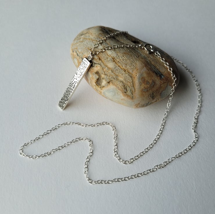 Seashore inspired pendant handmade from recycled sterling silver, with a pattern texture created by hammering for the sea and using metal hand stamps to form the pebbles on the beach.