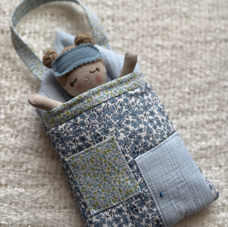 Bag is quilted back and front with a pocket in the front to carry doll and a pocket in the back to store clothes ,with little carry handle
