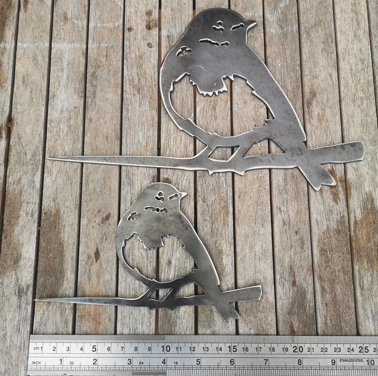 I am a blacksmith and was inspired by feathered visitors into the workshop to design some hand-forged swallows to decorate the garden, which also led to red kite and buzzard designs. They are great fun to make but I wanted to offer some more intricate designs at affordable costs so designed the plasma cut silhouettes as an evolution to the hand-forged birds.