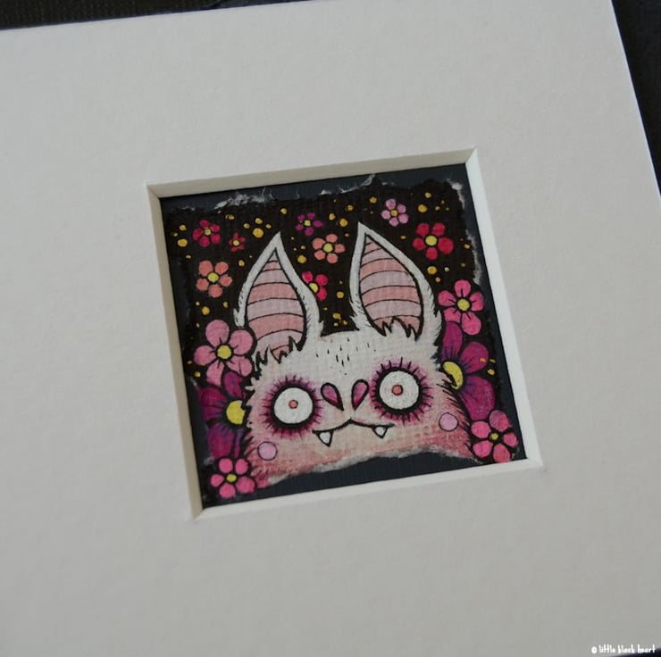 this is an original artwork in artists pens and watercolour pencils and paints, drawn on textured indian khadi paper, which is handmade from recycled cotton rag. the paper has been hand torn with an irregular edge, which I have then mounted to a twinchie painted with a paynes grey acrylic, to create a dark background.