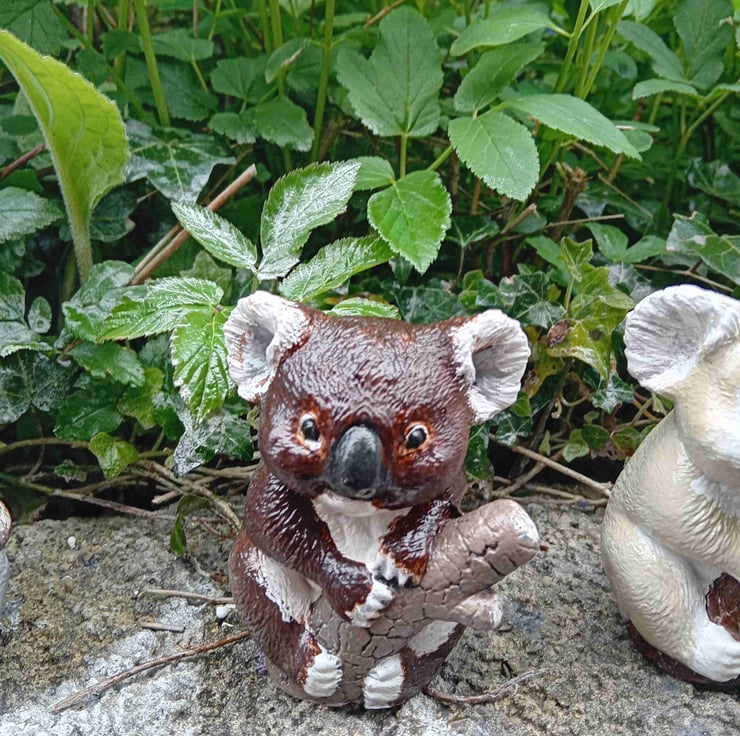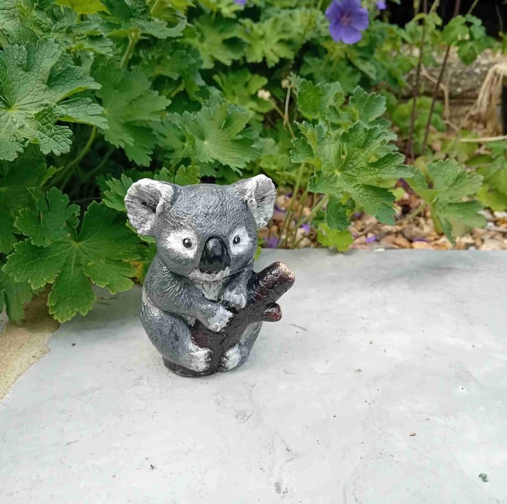 This is a handcrafted and handpainted representation of a koala bear in a tree. These super cute figurines come in 3 different colours. They are very popular and can be customised to order