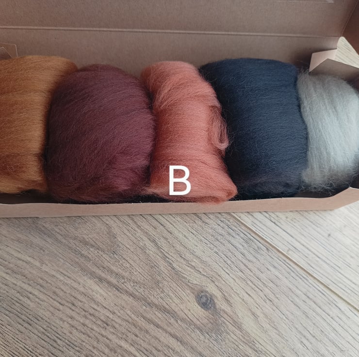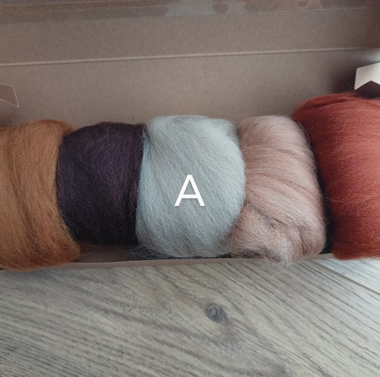 Sample pack of 5x10g of dyed merino in earth tones perfect for creating batts or rolags for spinning or for felting