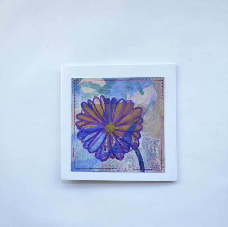 A single flower in shades of blue, similar in style to the Gerber. A modern, contemporary card.