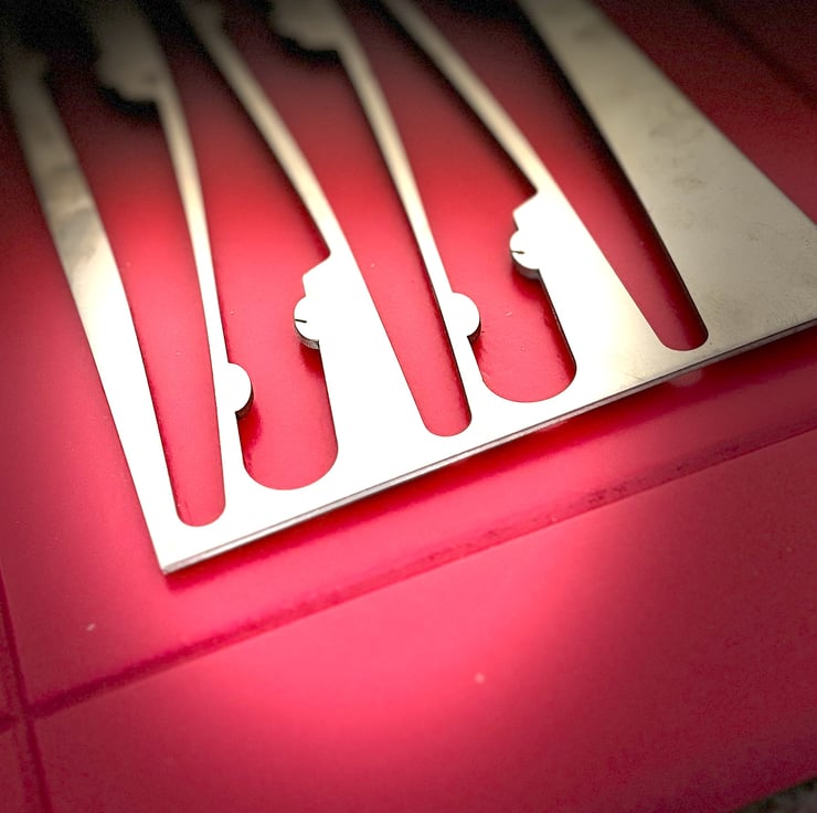 The cutouts are the 'waste' product from a small Sheffield factory and as such, they may display minor imperfections or rough edges that we feel adds to their charm and reflects their story.