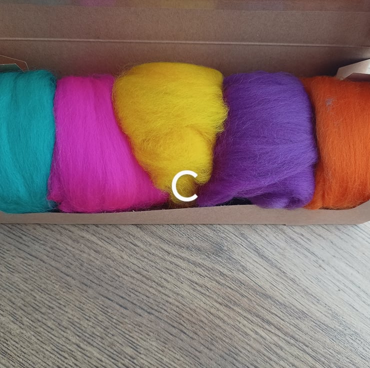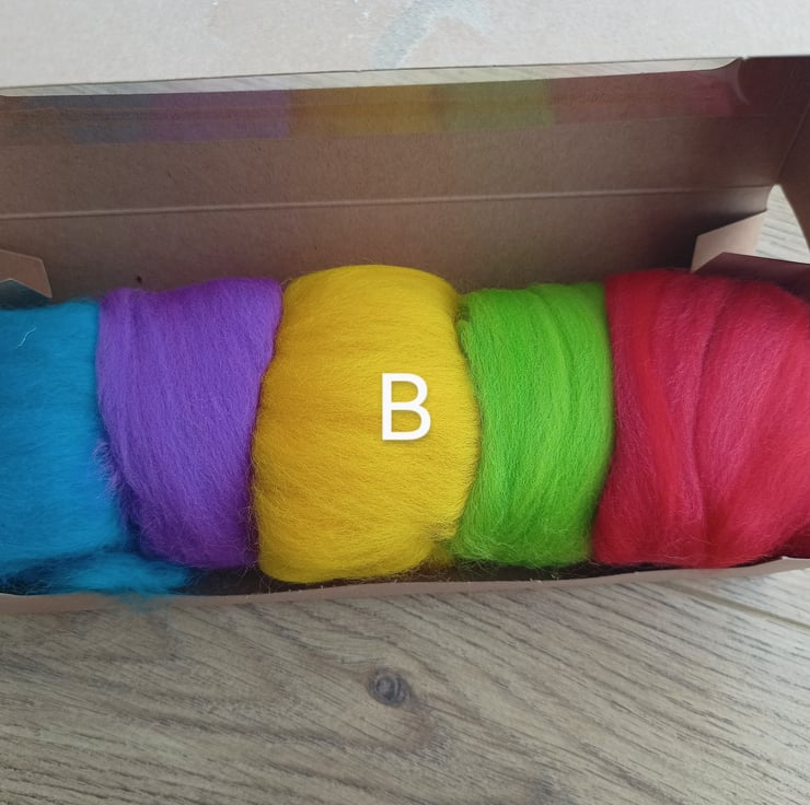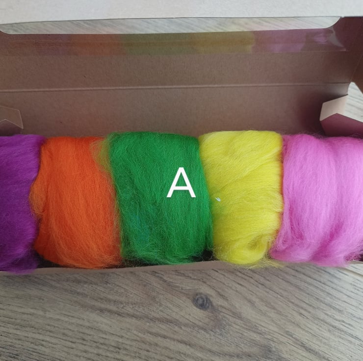 Selection pack of 5x10g bright merino fibre perfect for creating batts and rolags for spinning or felting