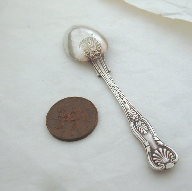 You will receive the spoon (not the 2p, that's just for scale) shown in the photos. Note it's antique, pre-owned and used. Wash (preferably by hand) before first use. A spot of silver polish now and again will give it a bit of a shine.
