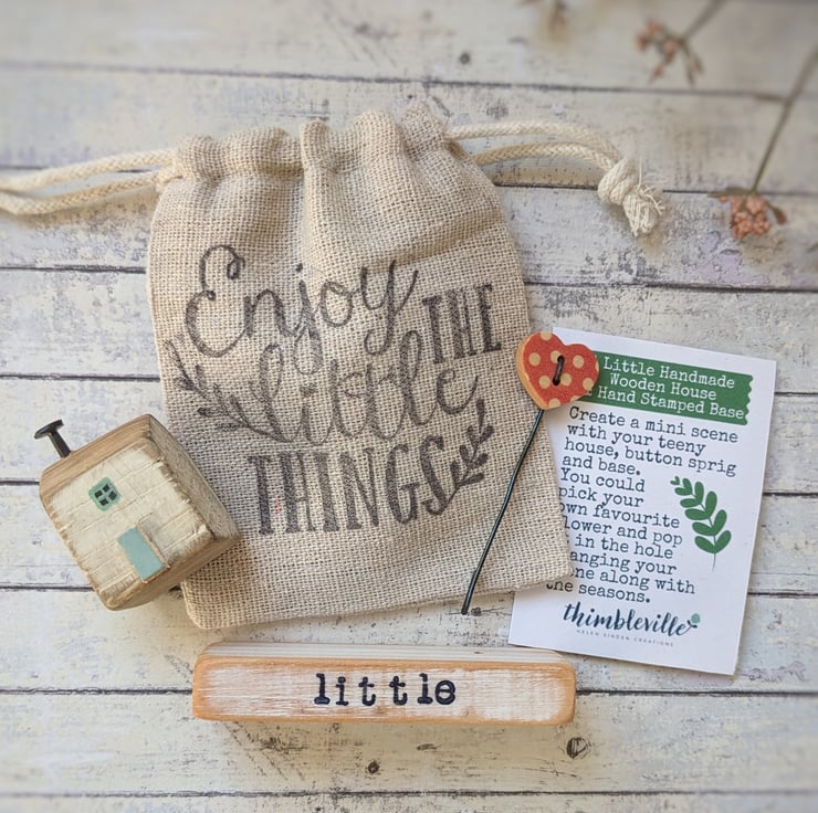 A teeny wooden house scene that you can choose to personalise with your own decoration!