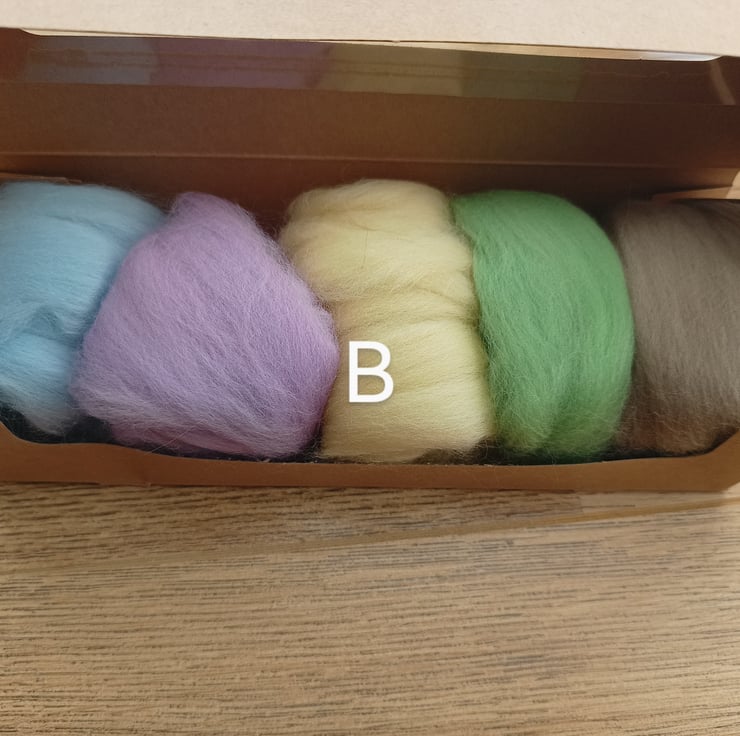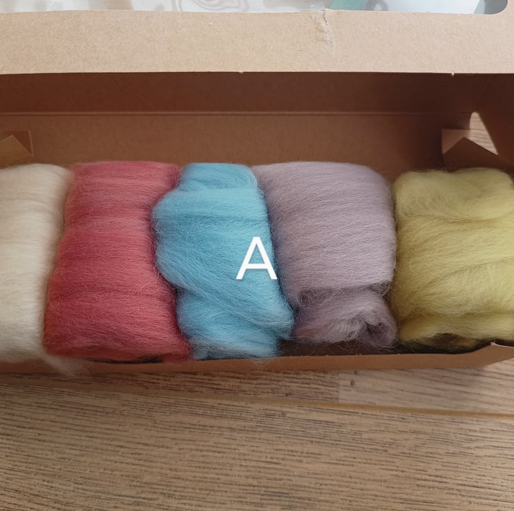 Selection of 5x10g pastel coloured dyed merino fibre perfect for creating batts and rolags and felting.