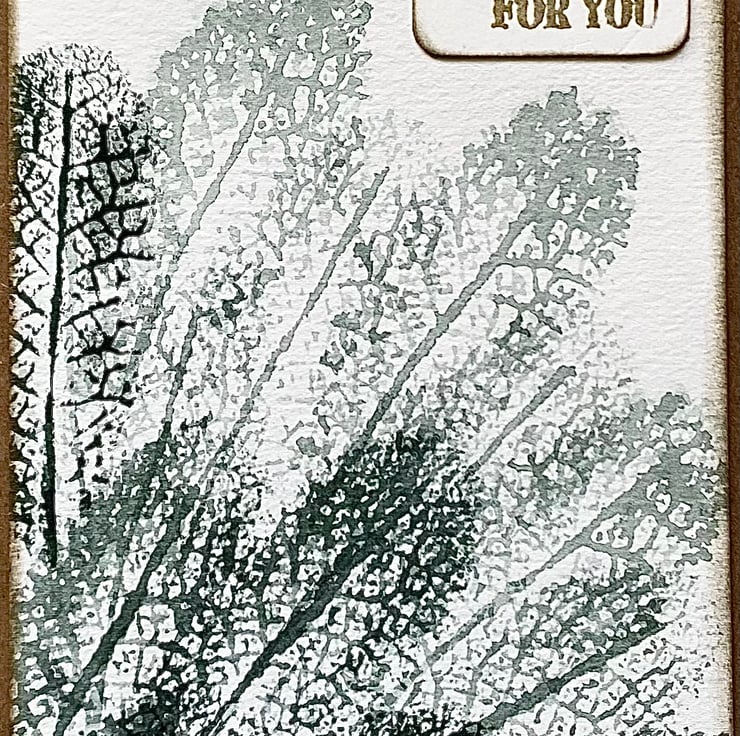 Hand printed primrose leaf card with antique gold, hand printed ‘Just For You’ sentiment, blank inside for your own personal message. (Gift tags sold separately).