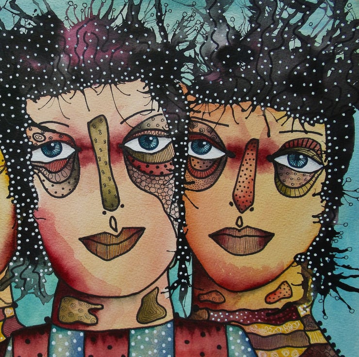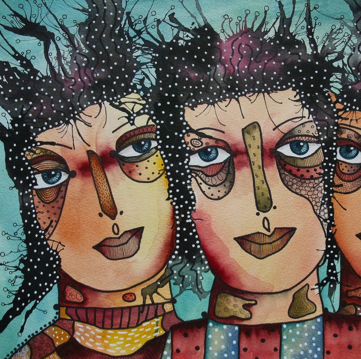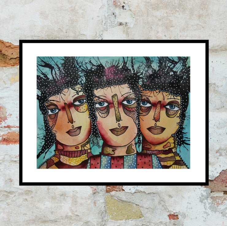 Hand painted & drawn original artwork measuring 15 x 11 inches. An unusual and attractive portrait / figurative painting on quality, heavy watercolour paper, which would make a striking focal point in any room. It will be hand signed on the front by Bea before dispatch and comes to you unframed - Framed photo is for illustration purposes only.