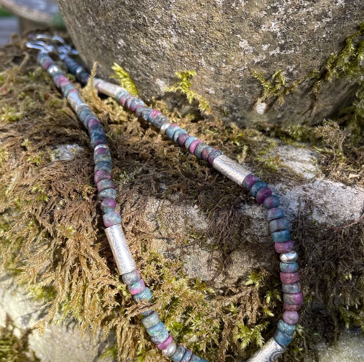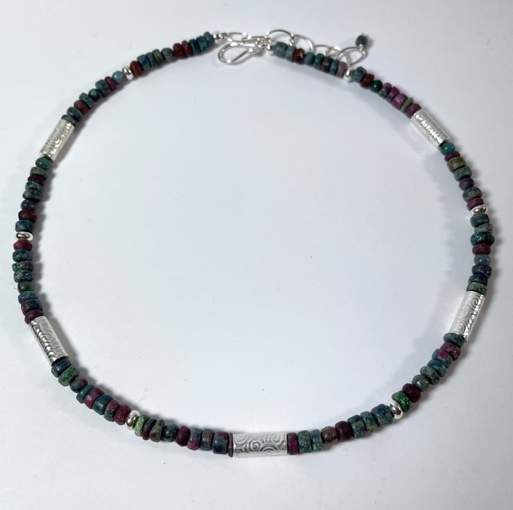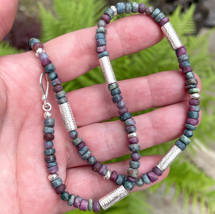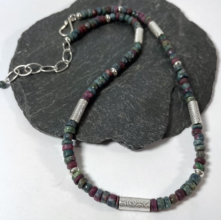 Ruby in apatite and handmade silver bead necklace, adjustable length
