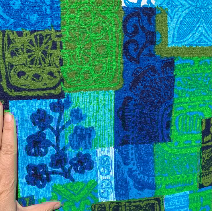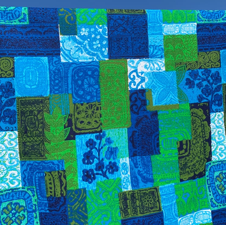 AMAZING RETRO Patchwork Style Blue Lime BARKLOTH 60s 70s Vintage Fabric