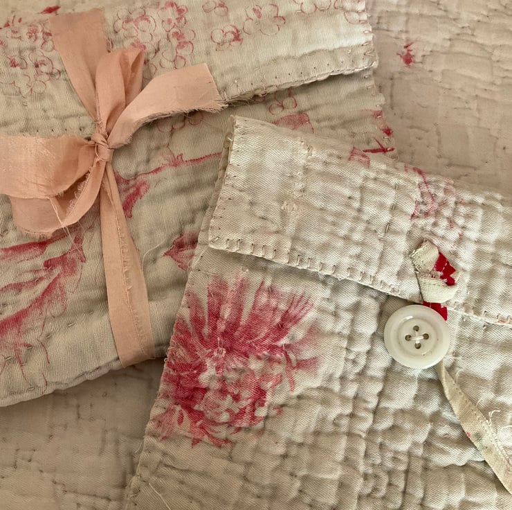 A gorgeous vintage quilt pouch, designed to hold your embroidery skeins, or small sewing projects.