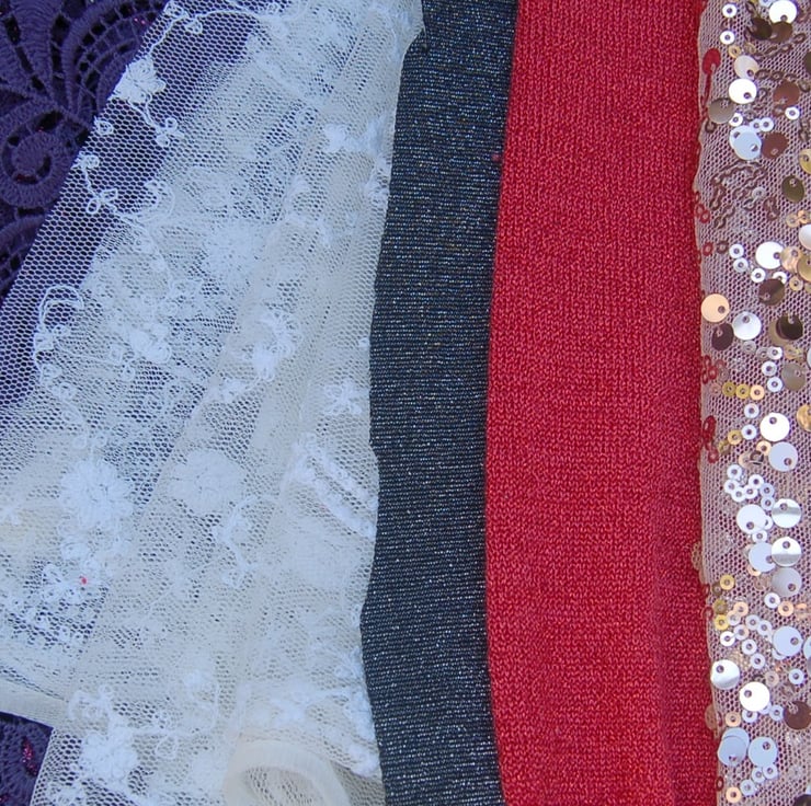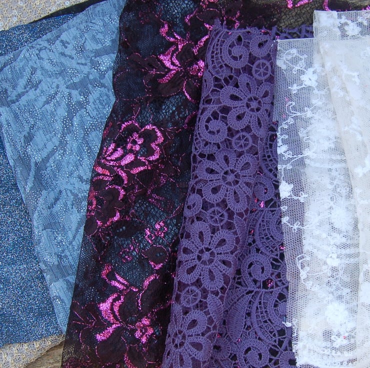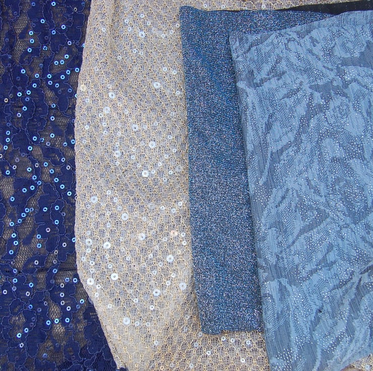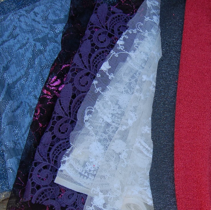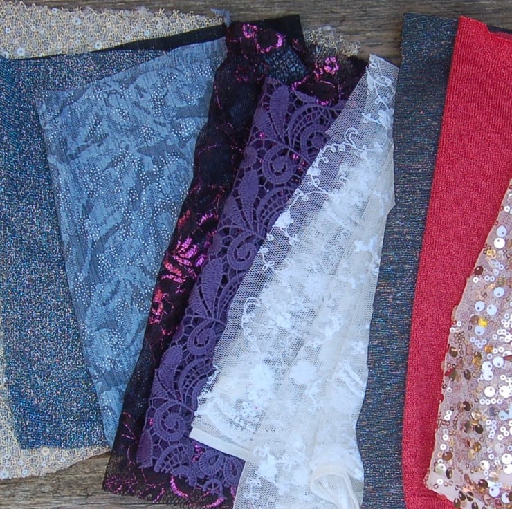 A fabulous selection of hand picked reclaimed fabric. Lace and sparkles.
