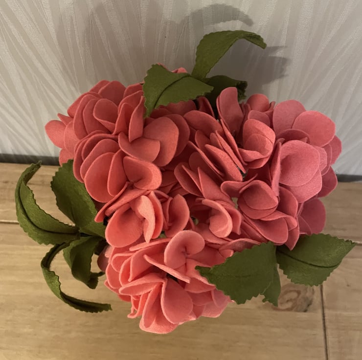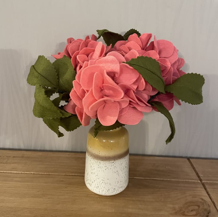 Beautiful Handmade Felt Hydrangea plants, handmade to order. Perfect for brightening up a window sill or adding colour to your home decor.