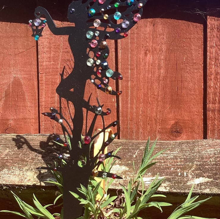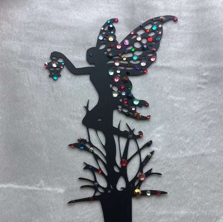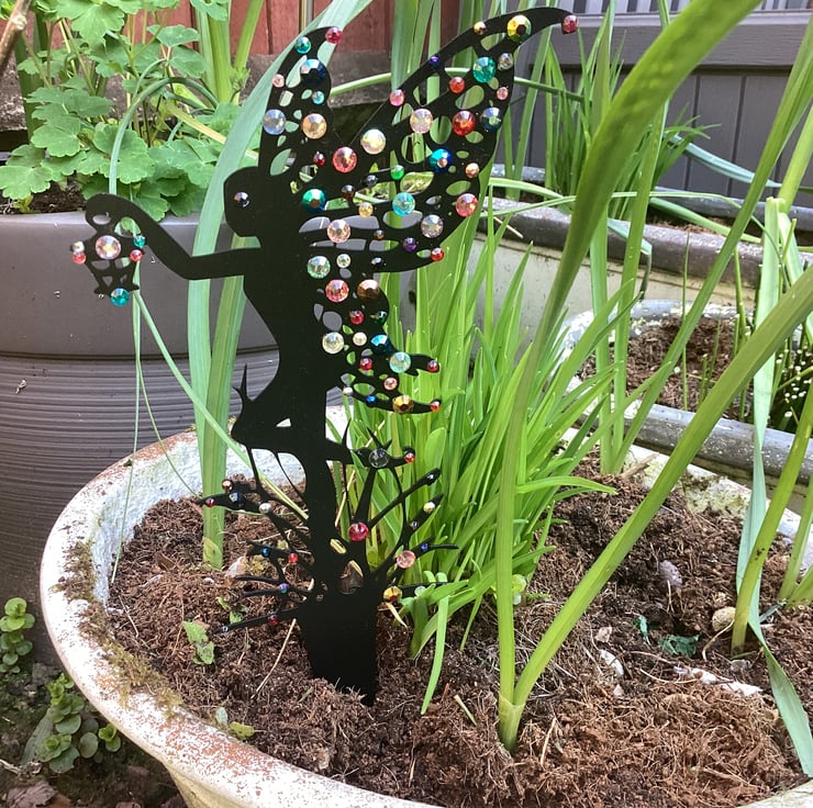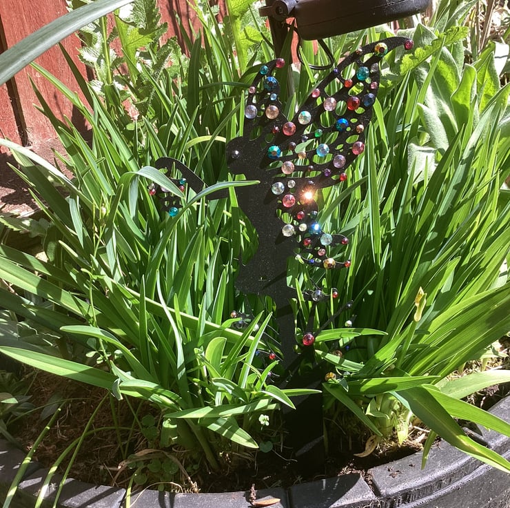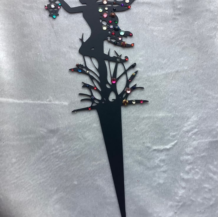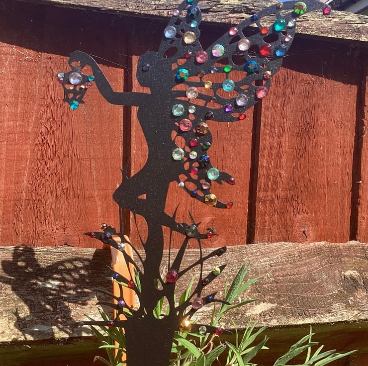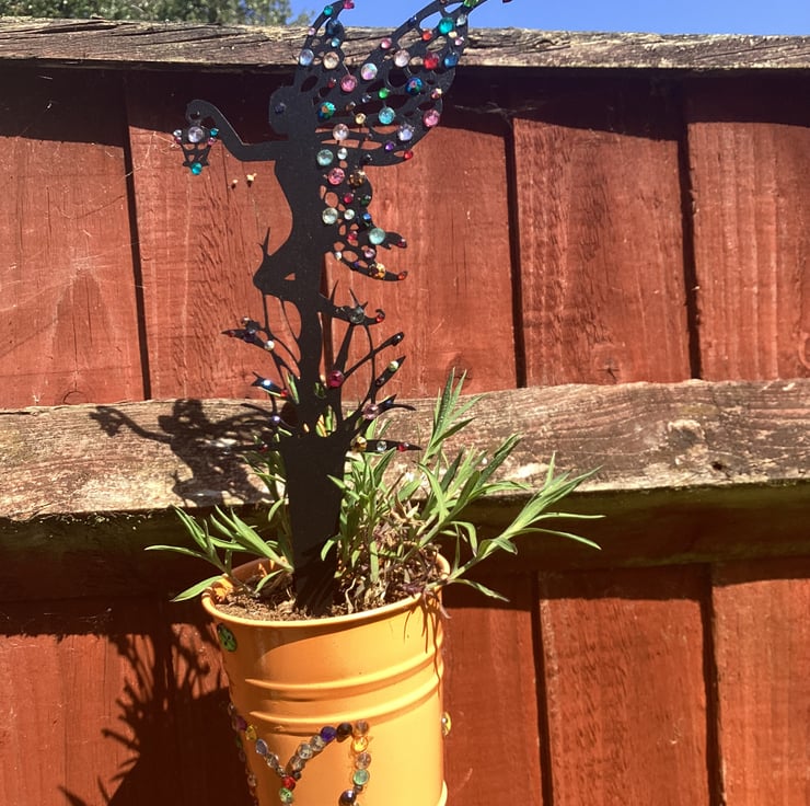 I’ve created this ornament in my home studio in West Midlands. To make it I’ve used metal Fairy garden decoration, embellished it with rhinestones diamanté in different colours . Make a great sun catchers in the garden, plant pots inside or out. Measurements in cm . Colours may slightly vary due to the lighting during the photo shooting or the monitor's display.