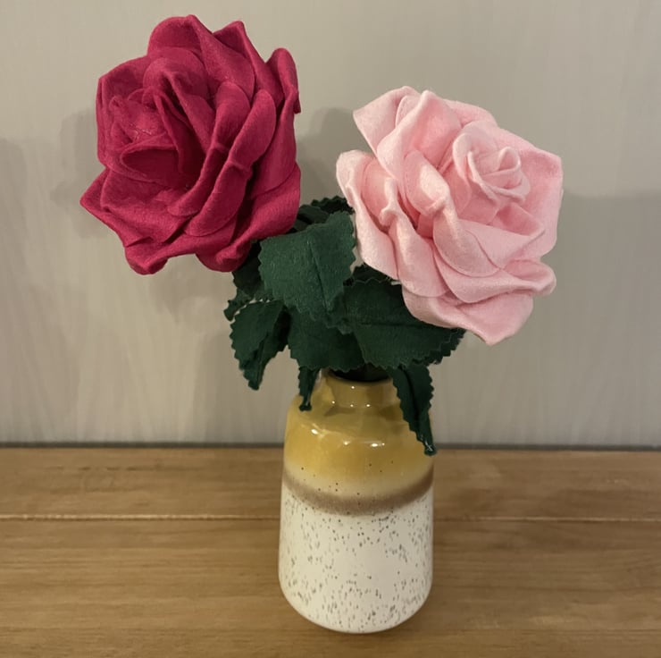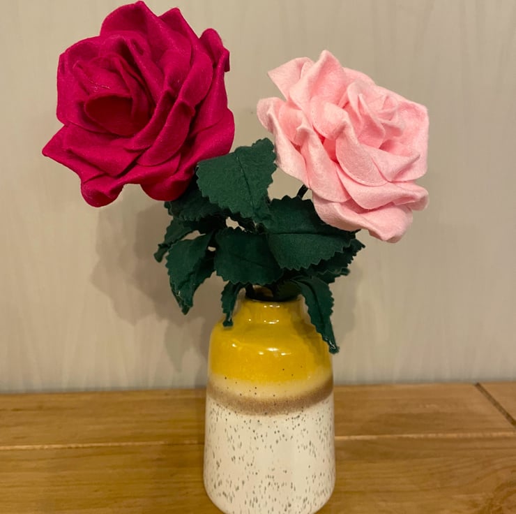 Beautiful handmade felt roses, made to order. Stunning roses that will brighten any room or window sill. Perfect for a beautiful handmade present/gift for someone special or for wedding flowers.