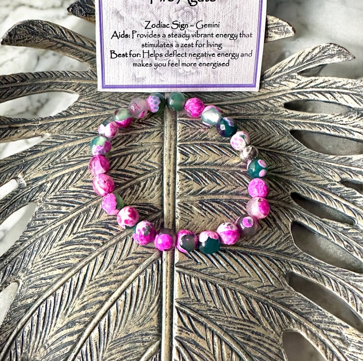 Each bracelet comes with a printed card, which gives the properties associated with each gemstone. The card also gives the associated zodiac sign, which is unrelated to the specific properties of the stone.