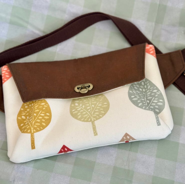 As an avid football fan and music lover who regularly attends matches and concerts, I am all too familiar with the ever shrinking size of allowed bags into these events. I came across this pattern and knew it was the perfect size to accommodate any and all restrictions. I take one everywhere I go now and have them in a variety of colours and fabrics. I can easily fit my phone, ear buds, make up, a large coin purse, my phone power bank, cable, and keys with a little room to spare!