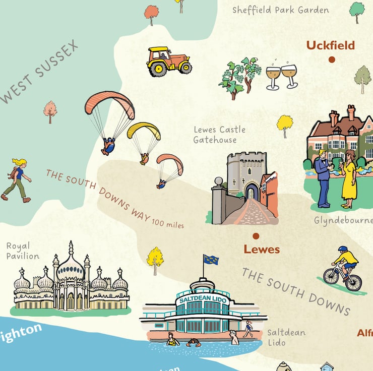 I'm hoping to eventually create illustrated maps of all the counties in Britain. Loved doing this one of my home county of East Sussex.