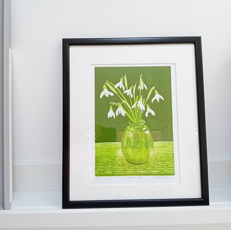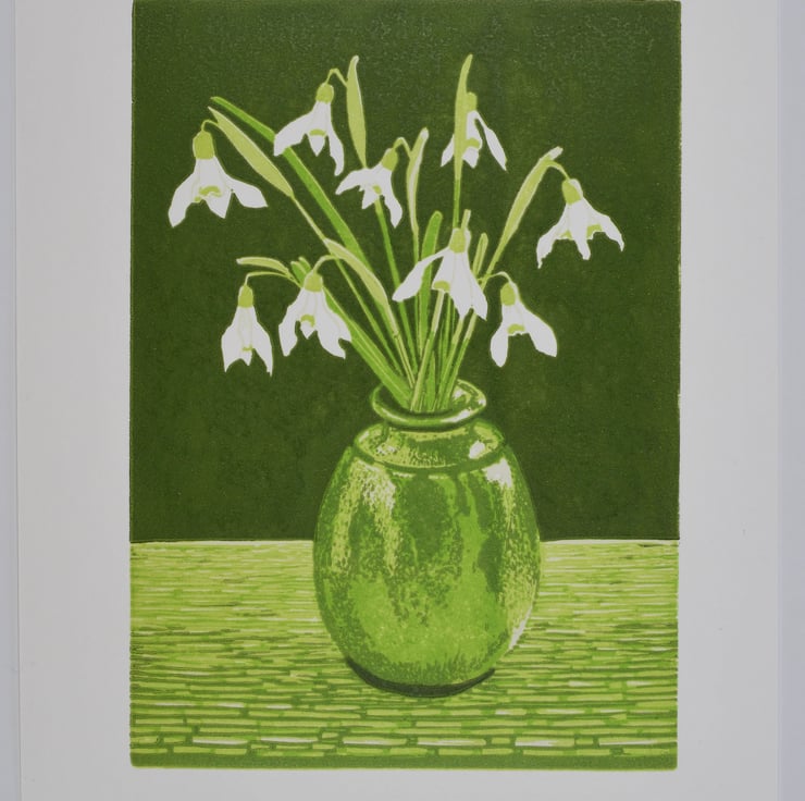Linocut print 'February Joy' Snowdrops Original limited edition reduction print