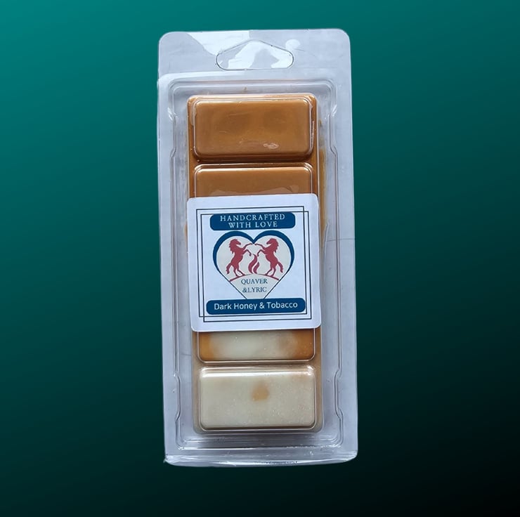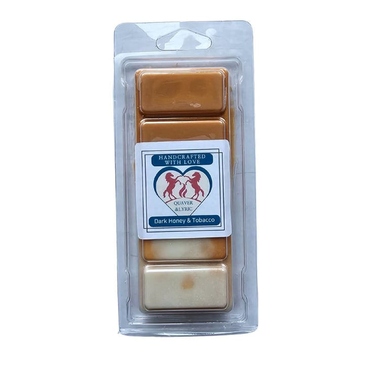 Luxurury highly scented dark honey and tobacco fragranced soy wax melt bars. Beige and white scented soy wax, hand poured into clamshells to produce a two tone melt bar. Made with premium quality, responsibly sourced soy wax and the finest fragrances providing 65 hours of long-lasting home scent.