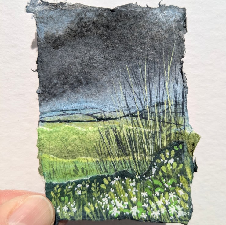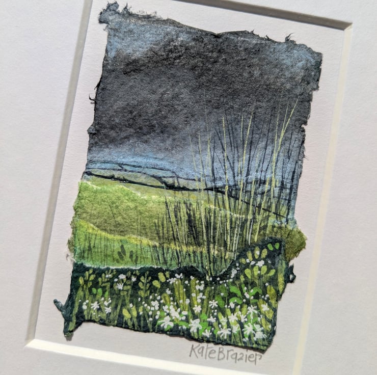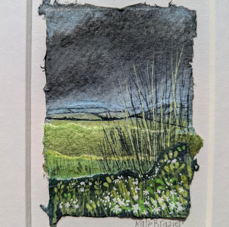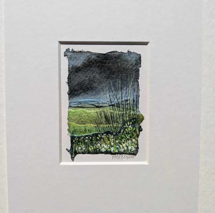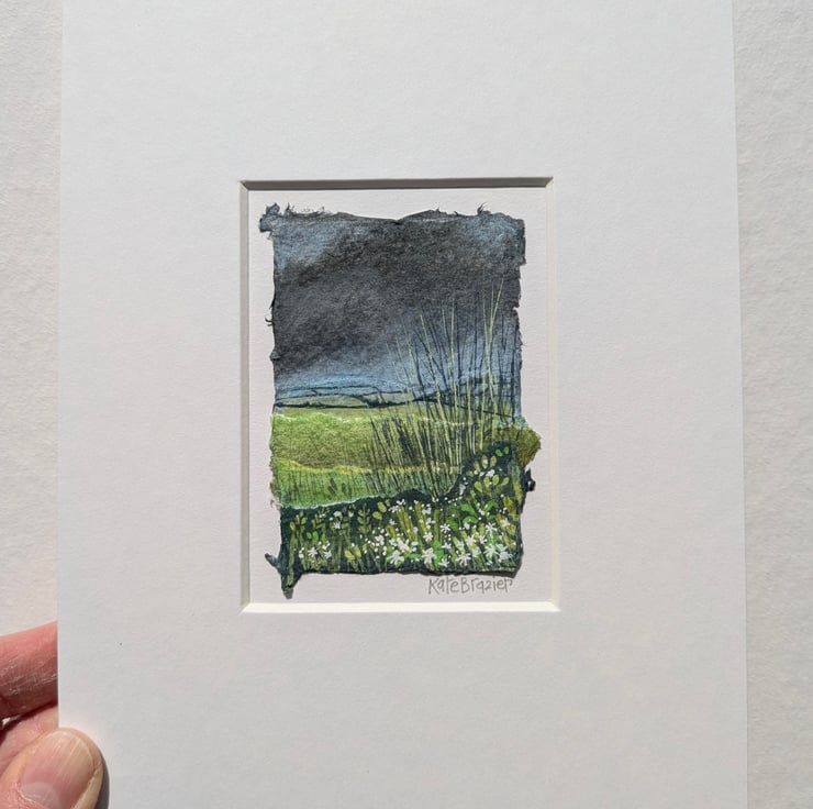 'A Storm over the Hills' is a tiny, mixed media collage float mounted into a custom A5 mount.