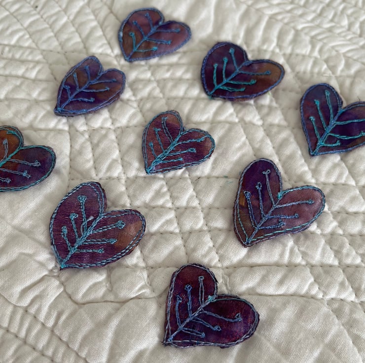 9 Free Motion Embroidery Heart Organza Embellishments Card Making Textiles