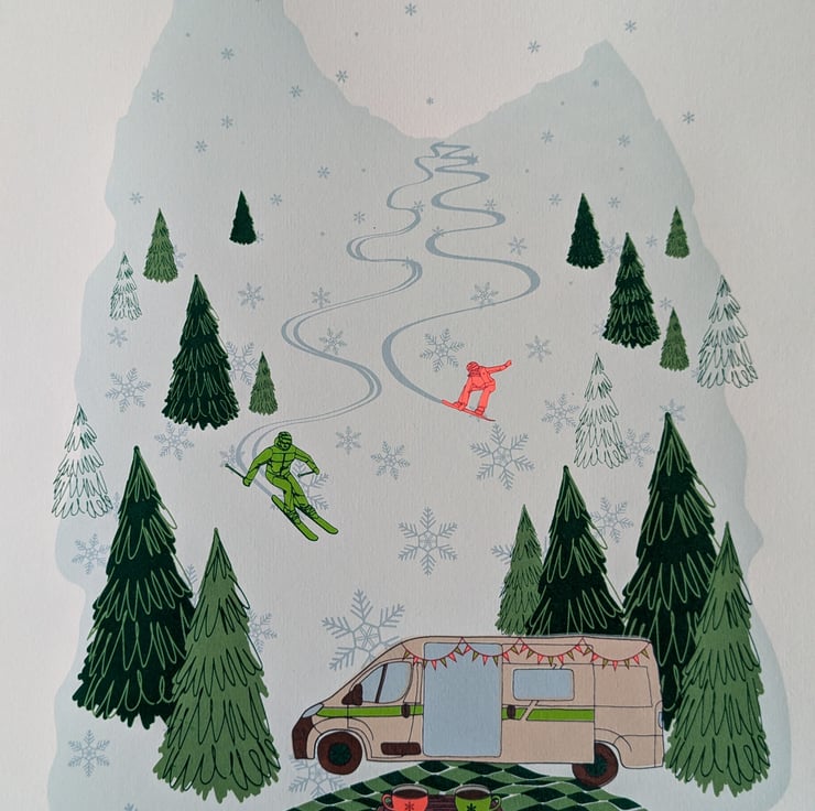 A3 Hand screen print. This was a complex print to create as it involved 11 layers of colour.