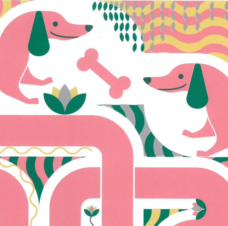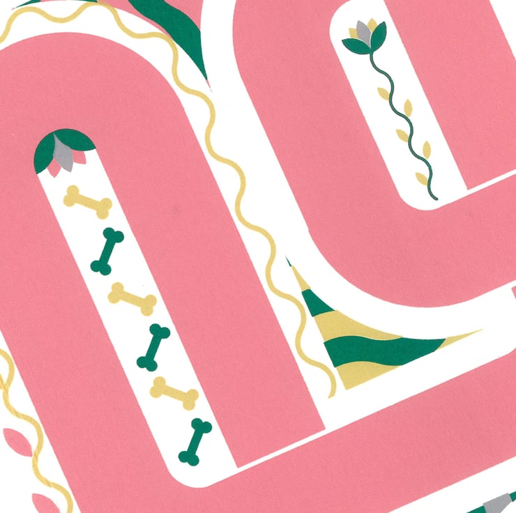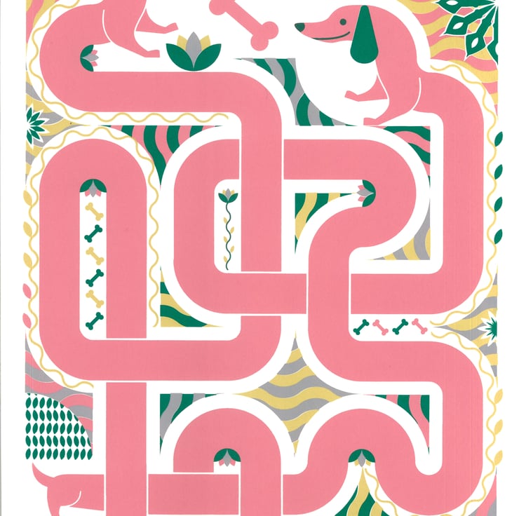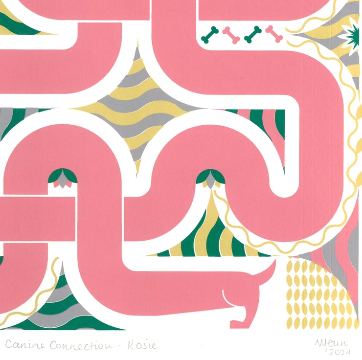 A3 Hand screen print. 4 layer print using Pink, Green, Yellow and Grey