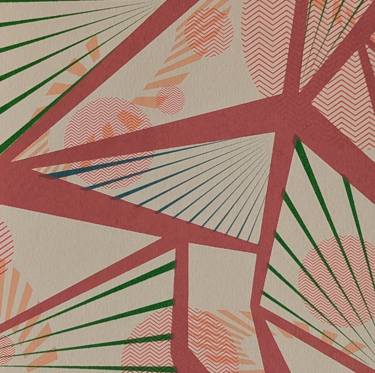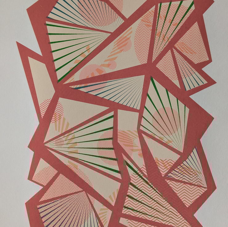 A3 Hand screen print. 7 layer print using pinks, yellows and greens