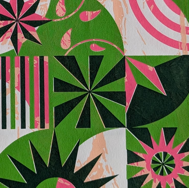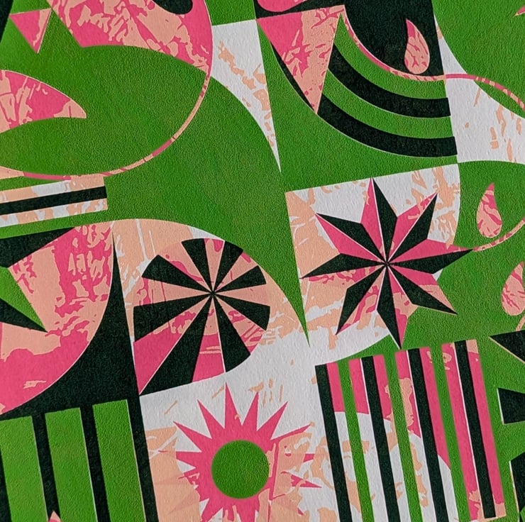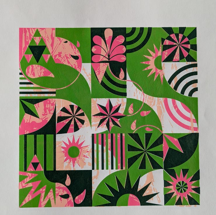 A3 Hand screen print. 4 layer print using Lime green, Fuchsia pink, Baby pink and Dark green.