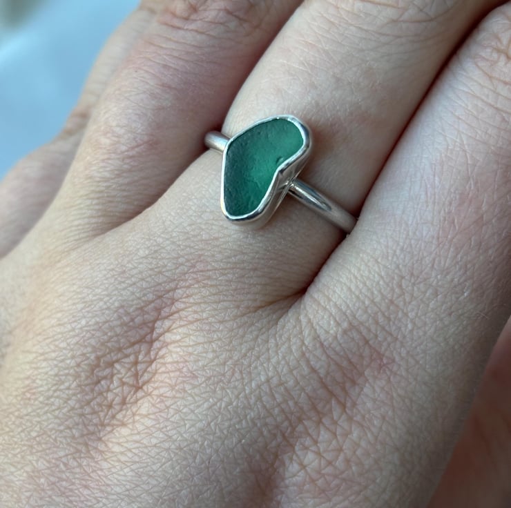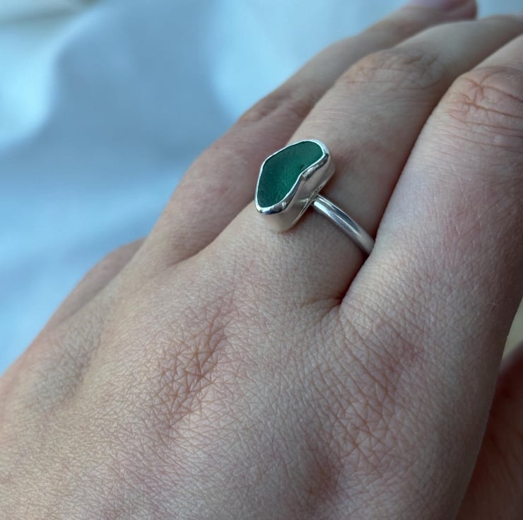 One of kind Sea Glass rings, entirely handcrafted in sterling silver (.925) and fine silver (.999).