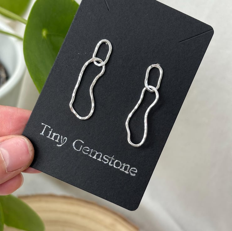 Material: Only recycled silver is used to make these earrings. I role silver scrap, cut it and shape it. Ear wires are made of 0.8mm Sterling Silver wire, also hand-shaped in my studio. Each pair comes with branded card and little bag.