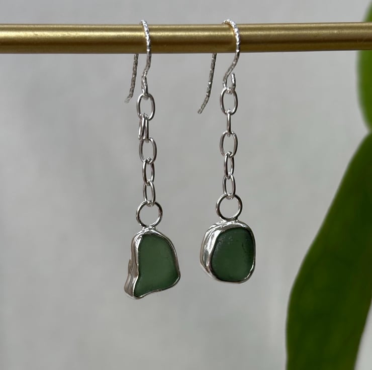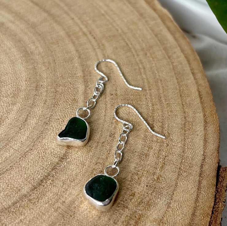 Elegant sea glass earrings in beautiful colour - the glass comes from Seaham Beach.
