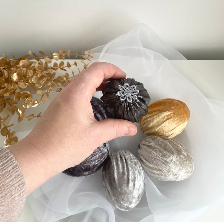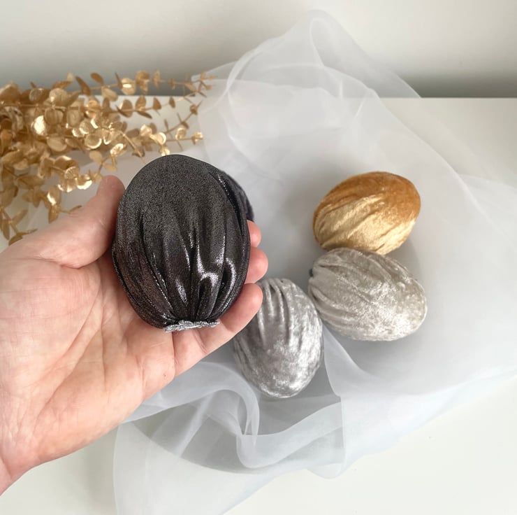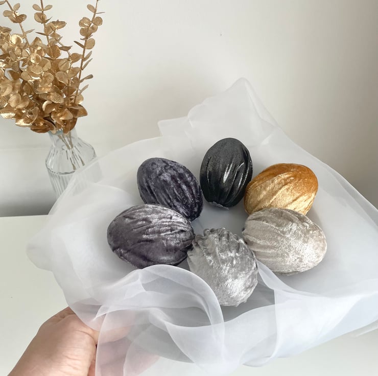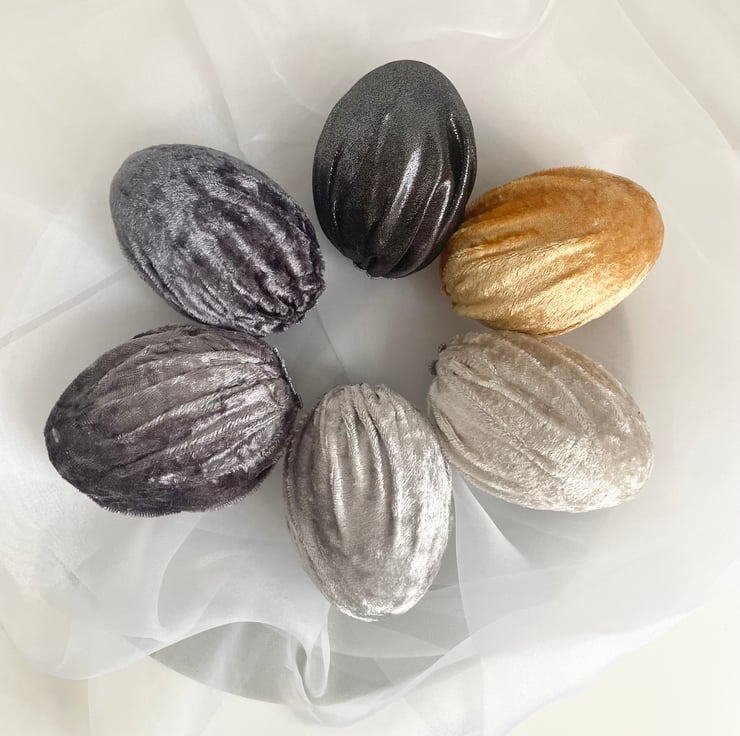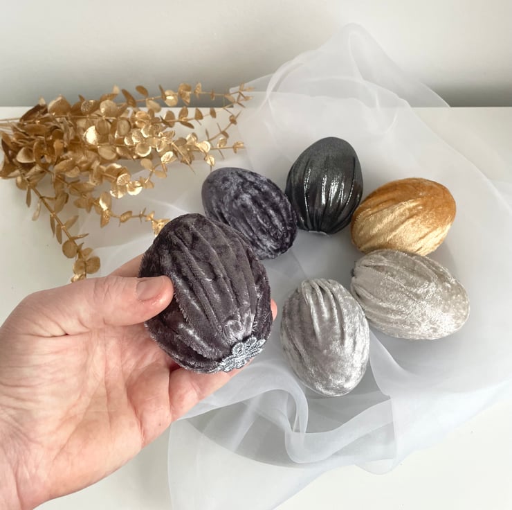 Add a touch of elegance and charm to your Easter celebrations with this set of 6 handmade velvet Easter eggs! Made from soft luxury velvet fabric wrapped around lightweight polystyrene eggs, these beautiful decorative eggs are perfect for creating a sophisticated and stylish spring display.