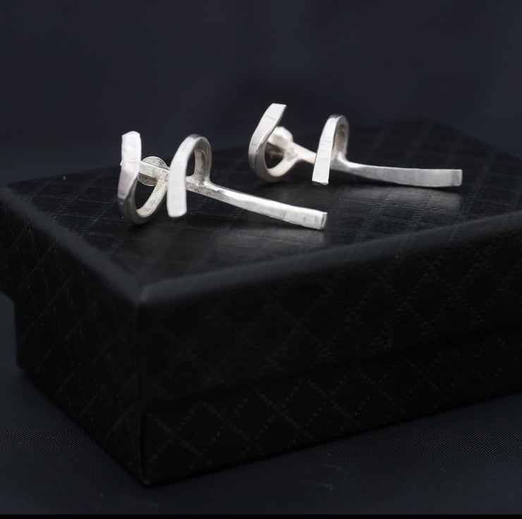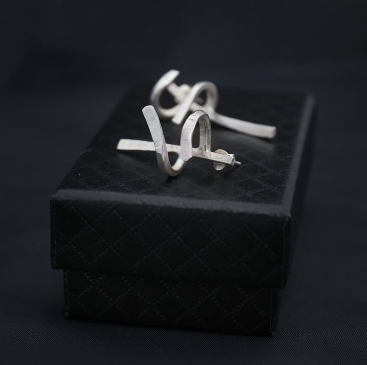 These are sterling silver drop earrings which are made to order. They are a unique design, imitating a hug.