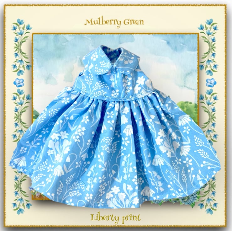 A beautiful dress in Liberty bluebells fabric, to fit the Mulberry Green characters. The dress is made from best quality designer cotton and has a Peter Pan collar and a lined bodice.