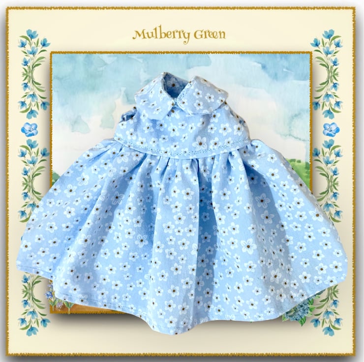 A pretty pale blue dress, in a floral print, to fit the Mulberry Green characters. The dress is made from cotton and has a Peter Pan collar and a lined bodice.