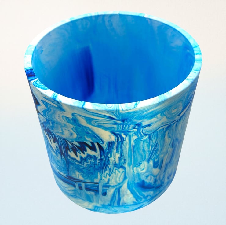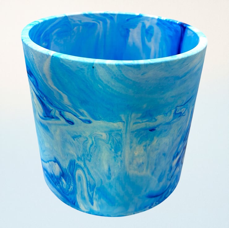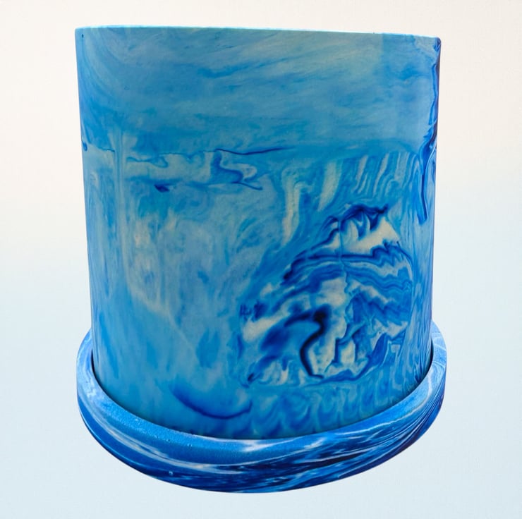 This extra-large handmade plant pot features a stunning blue marble effect, showcasing various shades of blue and white. It is thoughtfully crafted from Cassini, a material commonly used for restoring and repairing marble and stone, giving the pot a smooth and tactile finish reminiscent of marble. Additionally, it is water and weather-resistant, making it suitable for both indoor and outdoor use.