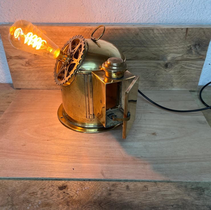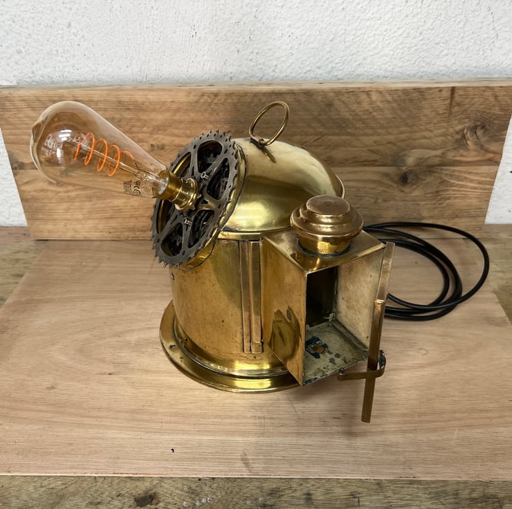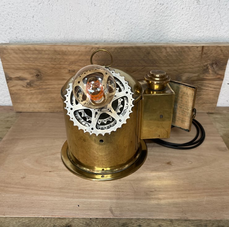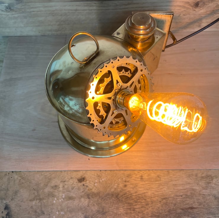 We have made a really cool unusual clock, by using an old ships binnacle, bicycle cogs and a feature light bulb