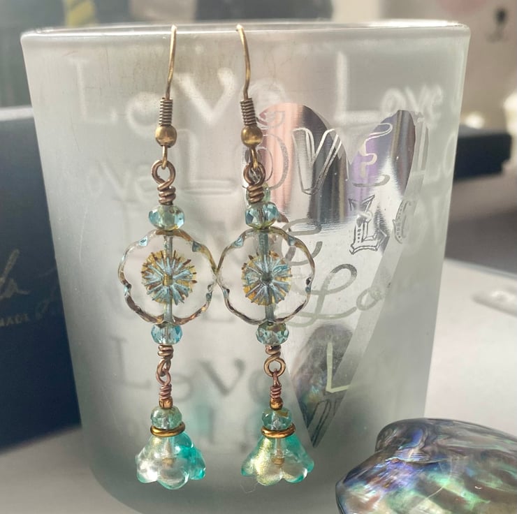 I love working with antique bronze wire and love how it compliments the Czech beads. Long drop earrings are a must for the summer months and, fingers crossed, we will have some long hot days soon.