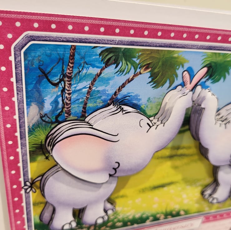 How cute is this card? The elephants are layered up using foam tape to add dimension. It's left blank inside for your own message.