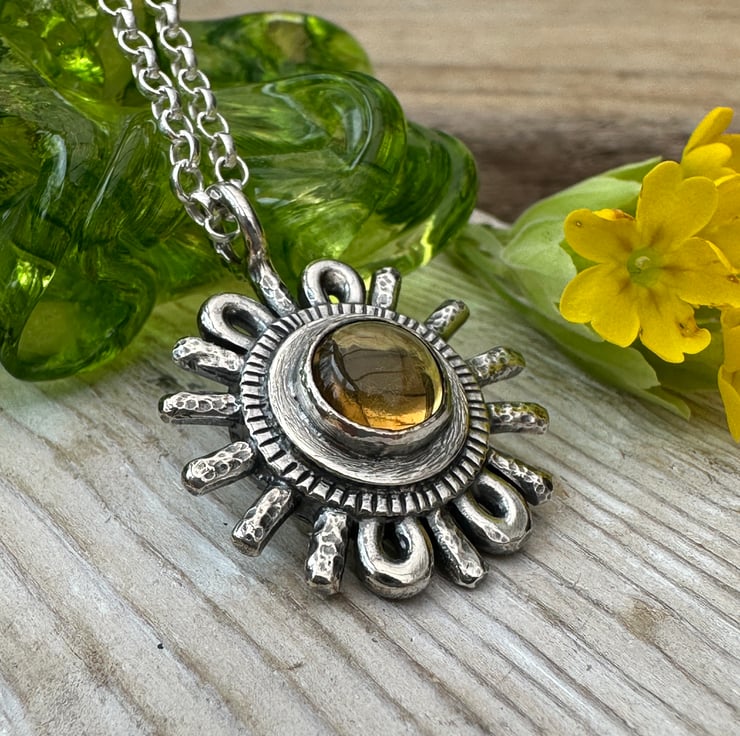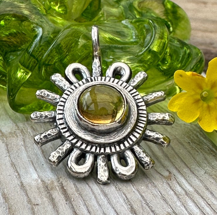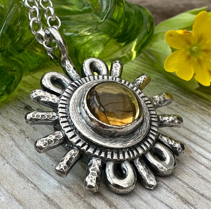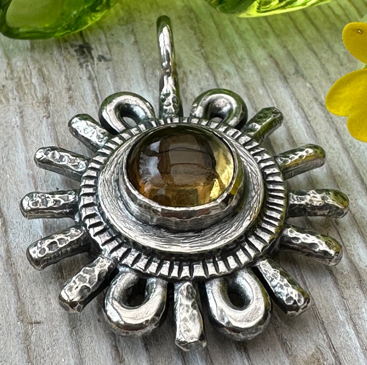 I thought I would create a collection of relic pendants - this one is set with a citrine cabochon and is inspired by the sun. Sunne is an old English name for sun and in mythology Sunne (also Sunna or Sunu) is the Anglo Saxon goddess associated with the sun.